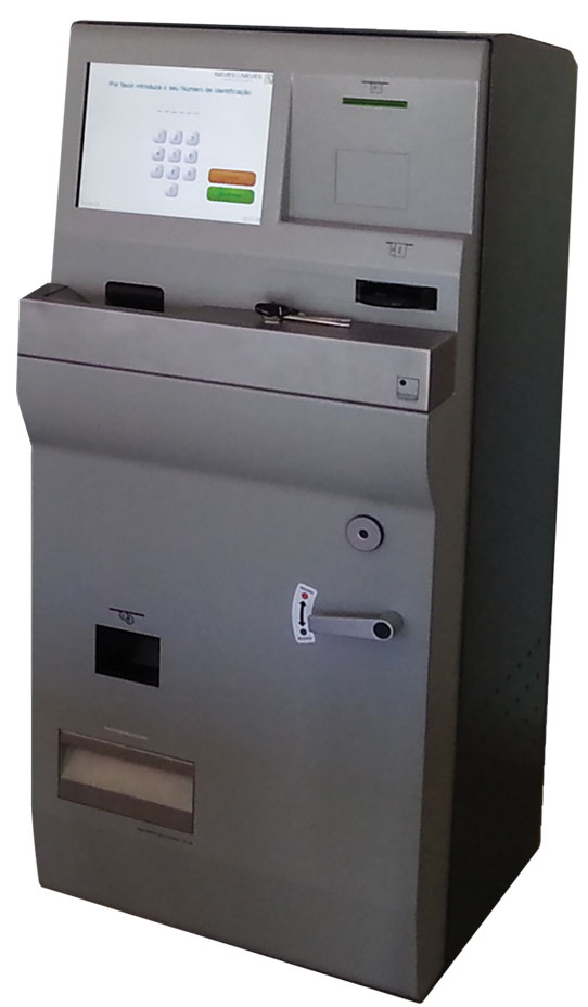 A máquina de depósito de dinheiro da marca Banking Automation, que poderá ser um complemento ao sistema de bilhética sem contacto, podendo funcionar com equipamentos da marca Wayfarer-Parkeon ou de outros fabricantes.